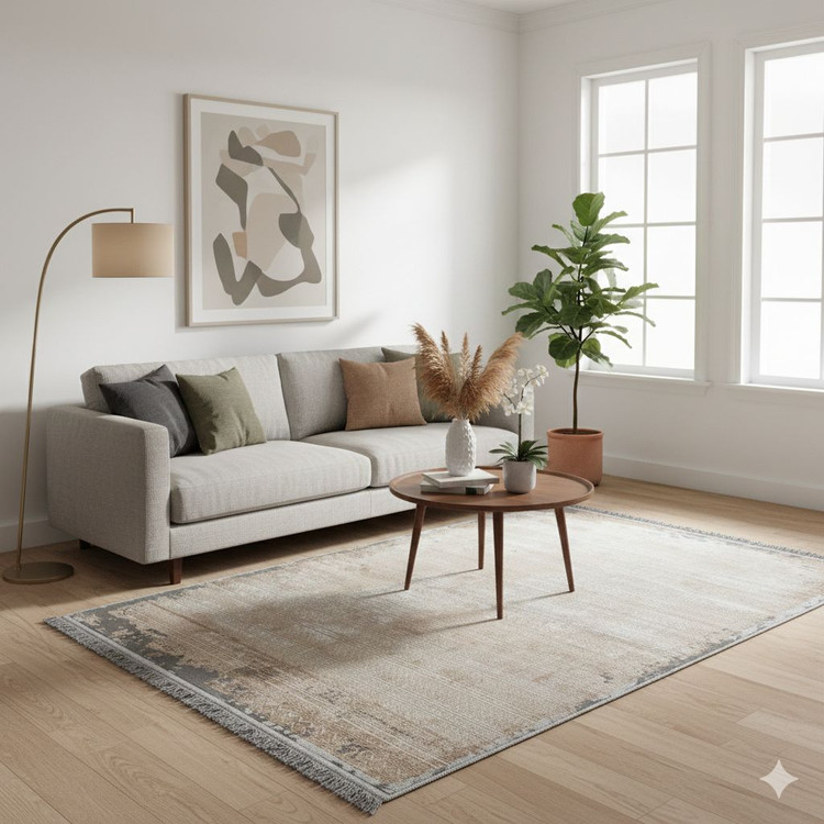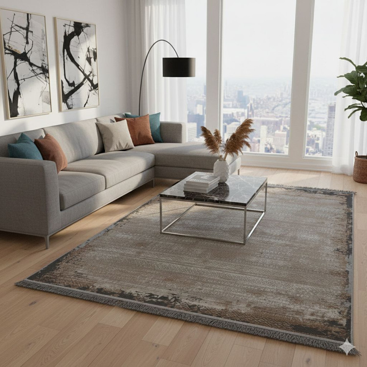 فرش مدرن شفق تبریز طوسی و نسکافه ای کد 9245