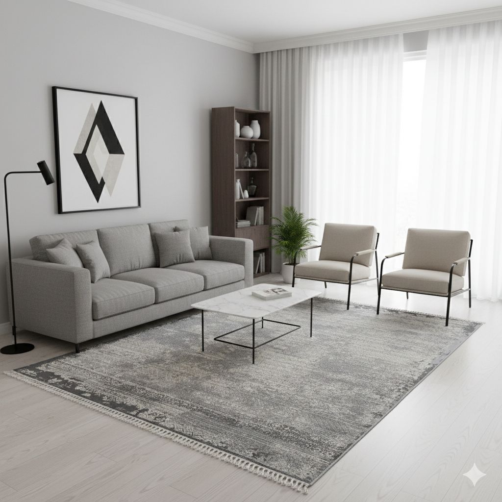✔ ست شدن آسان با مبلمان طوسی، سفید، کرم و چوبی