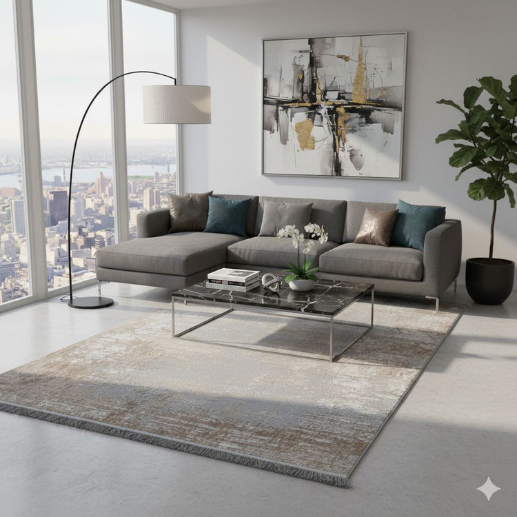 فرش مدرن شفق تبریز طوسی و نسکافه ای کد 9225
