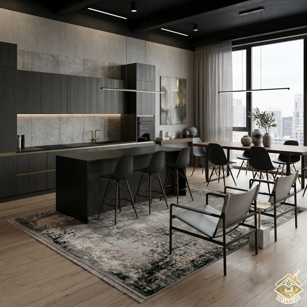 فرش پذیرایی طوسی و مشکی